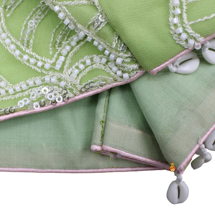- Floral Elegance: Beads, threads & sequins on top for a sparkling charm.