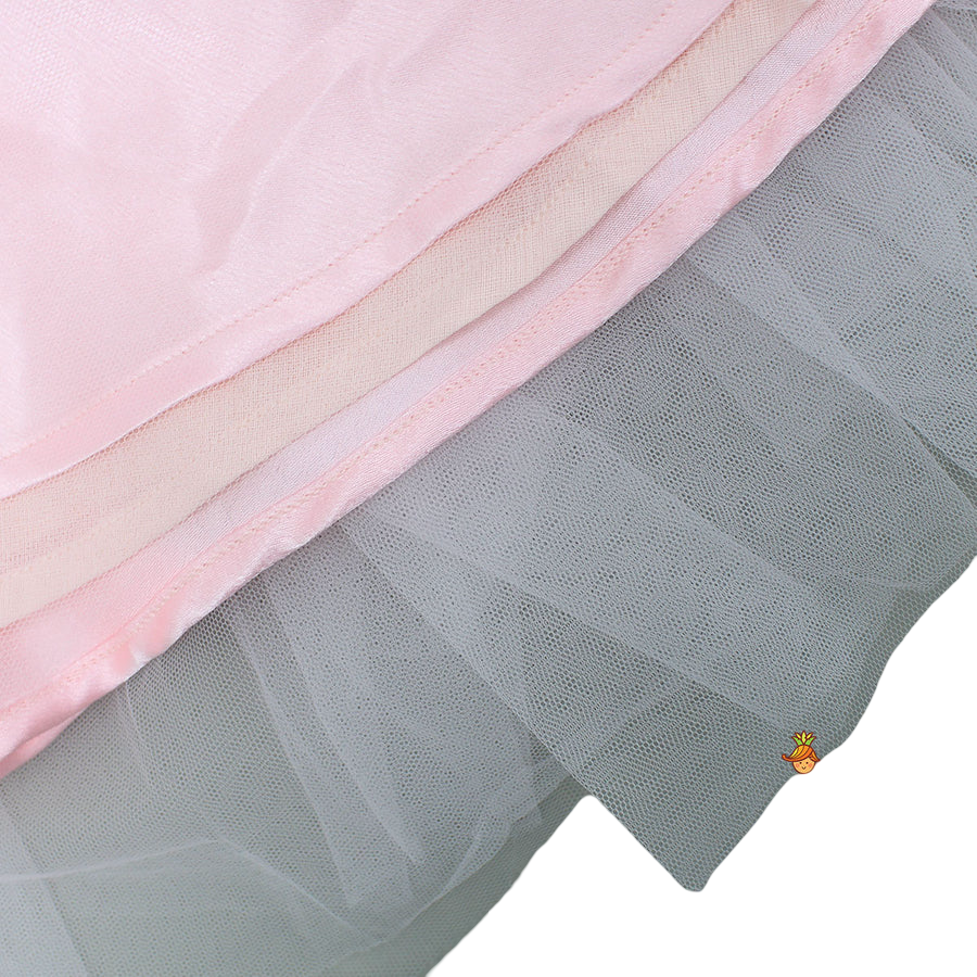 Blossom Charm Tulle Lehenga Set with Floral Embroidery & Elegant Net Cuffs