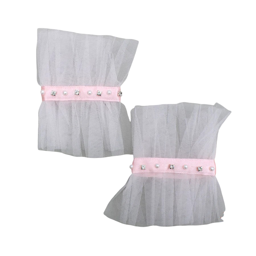 - Chic 3/4 Sleeves: Wrist cuffs adorned with stones & pearls.