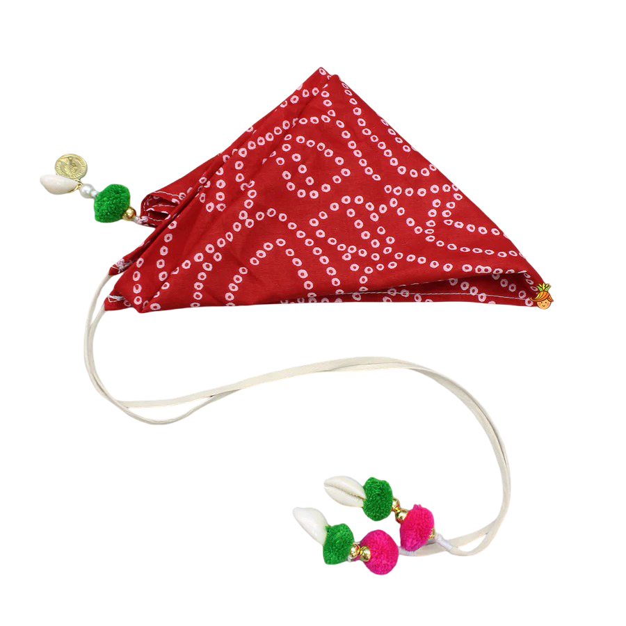 - Bandana: Matching Bandhani bandana with tassel tie-ups for a fun twist.