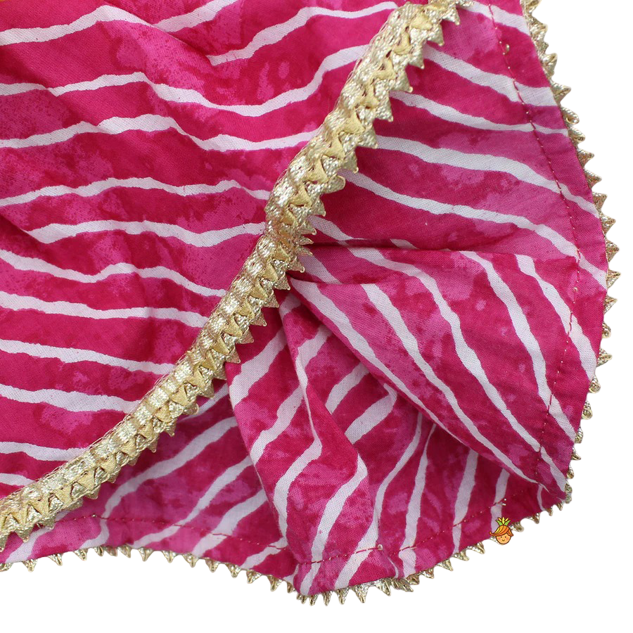 - Dupatta: Coordinated Bandhani dupatta finished with lace for a festive touch.
